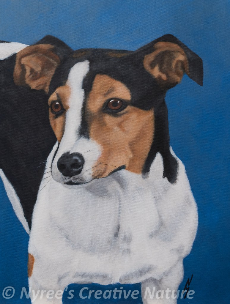 My special little guy, “Sykes”. Oil on board (NFS).