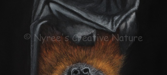 “Siegfried” the Grey-Headed Flying Fox. Pastel on A4 Paper; Framed, 43x53cm (NFS). Cards and Limited Edition Giclee Prints available in my Etsy Store.